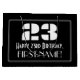 Under 1920-talet-1930-talet inspirerade stil till vintagens framträdande presentsäcksdesign med en stor konsthugga som ser inspirerad ut till nummer "23", budskapet "Lycklig 23:e födelsedagen", en personlig namn och en gräns mönster som består av tunt linjer. Den har en bakgrund med svart färgad. En dylik presentpåse på födelsedagen kan användas när en gåva eller present i firande på någons 23-årsdag är ge. [~Z0000495]