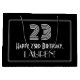 Vintagens utseende 1920s-1930-tal ser inspirerad av presentsäcksdesignen på födelsedagskalan med ett stort konst deco stil-inspirerat nummer "23", meddelandet "Lycklig 23:e födelsedagen", ett eget namn och ett gräns mönster som består av tunt linjer. Bakgrunden är svart på färgad. En presentpåse som denna kan användas när en gåva eller present ge till heder för någons 23-årsdag. [~Z0000497]