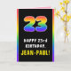 Den här sjudande kortdesignen med ett stort nummer "23" och en roligt som kallas för ett högtidligt hälsningskort har ett stort nummer med multifärgadens regnbågsspektrum som inspirerar övertoningen mönster, tillsammans med meddelandet "LYCKLIG 23:e BIRTHDAY," och en personlig mottagare namn. Insidan innehåller ett redigerbart hälsning-födelsedagsmeddelande, eller så kan det kanske rensas och lämnas tomt om ett meddelande ska skrivas för hand i stället. Ett så här bra, anpassat födelsedag kan vara ett roligt sätt att leverera önskemål till någon som firar sin tjugotredje födelsedag. [~Z0000636]