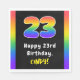 Den glatta och djärva födelsedagskalan med den pappra napkin-designen har ett stort nummer "23" med ett dynamiskt regnbågsspektrum som inspirerar gradienten mönster, tillsammans med meddelandet "23:e födelsedagen i Lycklig", och ett anpassade som tar emot namn. Födelsedag som pappra servetter som denna kan vara roligt till använda vid en party som hålls för någon som firar sin 23-årsdag. [~Z0000629]