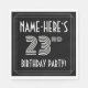 Den här snyggten och 1920-talet/1930-talet inspirerade stil till en papper napkin-design med tjugotredje födelsedagsfesten med ett eget namn, ett komplicerat konst deco stil inspirerat nummer "23:e", meddelandet "FÖDELSEDAGSFEST!" och ett gräns mönster som består av linjer. Bakgrunden är färgad svart som standard, men kan anpassas till ett annat färg om så önskas. Snyggtens födelsedag kan sådana pappra servetter användas i en födelsedagsfest till någon som firar sin tjugotredje födelsedag. [~Z0000616]