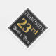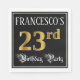 Den här pappra napkin-designen för finare och elegant har ett eget namn och meddelandet "23:e Födelsedagsfesten". Det stora talet "23:e" har en imitation/faux guld-inspirerad färgning av mönster, ord "Födelsedagsfest" är i opulent text med skript-stil och bakgrunden är färgad svart som standard (även om den kan anpassas). Ornata, lyxartade pappra blöjor av det här slaget kan användas vid en födelsedagskalender som hålls i firande på någons tjugotredje födelsedag. [~Z0000565]