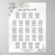 Detta vackra 23 sittande bröllop har plats för 230 personer med 10 sittplatser per bord. Den rostade designen har hand om färgade sprickor av löv och blommor av vattenfärg på en marmorerad dammig blå bakgrund. Titeln på det äldre skriptet med kalligrafi lyder: Sök efter bord och namn på paret och bröllop visas vid grund. Ett underbart sätt att hjälpa dina gäster att hitta sina platser samtidigt som du får mer elegans och stil.