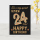 Ett 24:e födelsedagskort i chic för ett mycket speciellt Nephew, med siffran 24, i ett ljust mosaiskt mönster med en guld-effektkontur och all text i guld-effektsbokstäver (dvs. inte metallisk färg). En ljus röd stjärna och guld-effektstjärna står bredvid "Grattis på födelsedagen" på Judy Adamsons slående digitala design. Det inre budskapet, som du kan ändra, är "Med kärlek,"