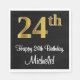 Den här eleganten, den sofistikerade och snyggtens pappra napkindesign har ett stort ordnummer "24:e" som har ett utseende som inspirerats av faux/imitation guld, tillsammans med hälsning-födelsedagsmeddelandet "Lycklig 24:e födelsedag" och ett redigerbart namn i ett skript-stil-teckensnitt. Den har också en bakgrund med svart färgad. Elegantens födelsedag skulle pappra blöjor som denna kunna användas vid en party som firar någons tjugofjärde födelsedag. [~Z0000516]