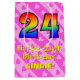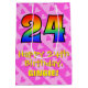 Den här roligten, den uppslagna och glada presentsäcksdesignen har ett stort nummer "24" med en regnbågsspektralgradient som inspirerade mönster, tillsammans med meddelandet "Lycklig 24:e födelsedagen" och en personlig mottagare namn. Den har också en kärleksfull bakgrund med hjärtformer av rosa-färgad i ett strippat mönster. En sådan här lycklig-påse kan vara ett roligt sätt att fylla på en födelsedagspresent eller gåva till någon som firar sin 24-årsdag. [~Z0000511]