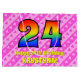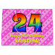 Den här uppgången och den 24:e lycklig-födelsedagskalenderns presentsäcksdesign har ett stort nummer "24" med ett mönster inspirerat av ett regnbågsspektrum. Det innehåller också meddelandet "Lycklig 24:e födelsedag" och ett eget namn. Bakgrunden är en roligt mönster av mörkens rosa och ljust rosa rand som innehåller levande hjärtan från rosa. En presentpåse som denna kan användas när man slår in presenter eller ger gåvor för att fira någons tjugofjärde födelsedag. [~Z0000414]