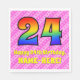 Den pappra napkin-designen med 24 års talande födelsedag har ett stort nummer "24" med ett färgstarkt regnbågsspektrum som inspirerar till övertoning mönster. Det innehåller också budskapet "Lycklig 24:e födelsedag" och ett anpassade namn. Bakgrunden är en mönster av mörkens rosa och ljust rosa rand som innehåller levande hjärtformer av rosa. Roligt, anpassade pappra blöjor av det här slaget kan användas vid en firande som hålls för att hedra någons tjugofjärde födelsedag. [~Z0000417]