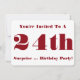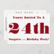 Mörk röd text finns på den här roligten, överraskande, 24 födelsedagsfest inbjudan för vem som helst.