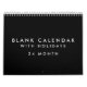 En 24-månaders svart kalender med helgdagar är en tvåårskalender som ger en visuell återgivning av data, veckodagar och helgdagar över en 24-månadersperiod. Elaket "blank" anger att det inte innehåller specifikt data eller specifika händelser. I stället fungerar det som mall för användare att lägga till egna avtalade tider, händelser och viktigt data. Beskrivningen "svart" avser vanligtvis kalenderns färg-schema, där bakgrunden eller teckensnittet kan vara svart, ge det till ett modernt utseende och elegantens utseende.