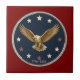 Medan stentillverkningen lutar åt en rustik, tung känsla, erbjuder en keramisk kakelunderlägg en mycket skarpare, högglansig finish som får färgerna att poppa. Här är en beskrivning anpassad för en keramisk version: Produktöversikt: Denna premium keramiska kakelunderlägg har en slående amerikansk örnemblem mot en djup marinblå och karmosinfärgad bakgrund. Den högglansiga glasyren ger en slät, reflekterande yta som förstärker de intrikata detaljerna i örnens fjädrar och de omgivande stjärnorna. Design & Estetik Vibranta detaljer: Den keramiska tryckprocessen möjliggör en skarp, högupplöst återgivning av den centrala örnen och den känsliga silvertonade ringen. Polerad finish: En skyddande klarlackglasyr ger underlägget en glassliknande glans, vilket gör det motståndskraftigt mot blekning och lätt att torka av. Formell appell: "Segelns auktoritet"-stilen gör detta till en perfekt passform för en verkställande direktörs skriv