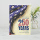 Ideal patriotic souvenir invite for history lovers, educators, veterans, families, and proud Americans marking this once-in-a-lifetime milestone. The design shows large 250 in faux gemstone American flag colors with a wavy American flag in the background. There is CUSTOMIZABLE TEXT which you can PERSONALIZE with your name, family, or other line of text. (Remember to swap out the QR code and replace with one of your own (or a small photo or logo for corporate events).