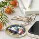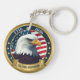 This image displays a circular, patriotic emblem featuring a bald eagle's head in the center, set against a backdrop of the American flag's stars and stripes.
