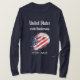 Beautiful and elegant long sleeve t-shirt for men to commemorate the 250th anniversary of the United States. The t-shirt shows the name of the country on the top, plus 250th anniversary and the dates 1776-2026 on the bottom, all in white and creating a nice contrast with some dark colors such as grey or black. The image of an American flag appears in the center in a diagonal position like if it were waving in the wind.