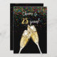 Champagne skål på svart med fallande konfetti för 25-års bröllopsdag fest inbjudan.