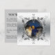 Anpassade foto silver bröllopsdag inbjudningar har vinranka metall look rullar som bildar en cirkulär ram för det personliga fotot av paret på 25-årsdagen. Baksidan är i koordinerande grått och redo för din anpassade silver bröllopsdag festinformation.