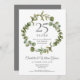 Med en elegant krans av skogsväxter kan denna eleganta botaniska inbjudan till 25-års bröllopsjubileum anpassas med din speciella silverjubileumsinformation. Baksidan har en matchande krans som ramar in jubileumsdatumet i elegant vit text på silverbakgrund. Designad av Thisisnotme©