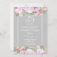 25-års silverbröllops rosig blommig inbjudan med fina rosa rosenguirlander. Denna eleganta vintage-inbjudan kan anpassas med din speciella 25-årsjubileumsfirande-information, med en silverbakgrund på baksidan. Designad av Thisisnotme