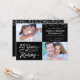 Bjud in dina gäster med denna 25-årsjubileumsinbjudan i svart och silver med retrotypografi som lyder 25 ÅR UNDER TILLVERKNING och integrerar deras bröllopsår som en del av designen. Inkludera då- och nu-foton för en rolig inbjudan med en look från det förflutna. Festinbjudans detaljer finns på baksidan.
