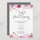 Med hjälp av ömtåliga akvarellblommor från lantliga trädgårdar ovanför och under din personliga silverjubileumsinformation från 25 år i chic silvertypografi. Baksidan har silverstjärnkonfetti. Designad av Thisisnotme©