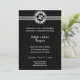 Eleganta svarta och silver 25-årsjubileum för bröllopsinbjudningar. Inbjudan har en silverfärgad emblem och den svarta bakgrunden får de silverfärgade bokstäverna att sticka ut. Lägg till dina festdetaljer.