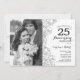 25-årsjubileum med foto - Vit svart blomster inbjudan. Modern design med botaniska teckningar och typsnittsmanus. Enkel trendig inbjudningskort perfekt för en stilig bröllopsjubileumsfirande. Kan anpassas för alla år av äktenskap. Utskriven Zazzle-inbjudningar eller direkt nedladdningsbar digital utskriftsbar mall.