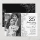 25-årsjubileum med foto - Vit svart blomster Inbjudningar
