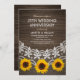 25-årsjubileum Rustik Trä Land Spets och Solroser Inbjudningar. Anpassade till din festliga detaljer. Du kan ändra det till 10-års, 30-års, 40-års, 50-års, 60-års jubileer osv. Funktioner vacker spets, solrosor och typografi på en rustik mörk träbakgrund. Stora eleganta bröllopsjubileums inbjudningar för kreativa land jubileer. Denna bröllopsjubileum inbjudan är designad av superdazzle.com
