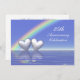 25-års silverjubileums inbjudan med en regnbåge och två skinande silverhjärtan som flyter på det blå vattnet. Anpassa exempeltexten på baksidan med din egen information för ditt evenemang.