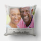 En kudde som en gåva för att fira 25-års silverbröllop. En elegant falsk silverbakgrund. Anpassa och lägg till din egen högkvalitativa bild av det lyckliga paret. Texten: Namnen skrivs med en svart modern handskriven typsnitt. Mallar för namn och datum.