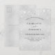 En modern, elegant och minimalistisk bröllopsannons. Falskt silverfärgad metallisk bakgrund dekorerad med falskt glitterdamm. Anpassa och lägg till era namn och festdetaljer. Svarta bokstäver.
