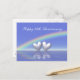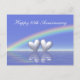 Vykort med min egen illustration av två silverhjärtan som flyter på vattnet under en regnbåge med anpassningsbar text som säger "Grattis på 25-årsjubileet".