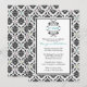 Vår eleganta svarta och vita damask inramade 25-års bröllopsjubileum inbjudan kan anpassas av dig med all din festinformation. Koordinerande artiklar finns tillgängliga i vår butik och vi är alltid glada att göra anpassade beställningar!