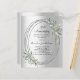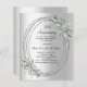 En faux silver tittar bakgrund. Dekorerad med grönt och ovalt ram. Anpassa och lägg till namn och detaljer. 1 lakan = 1 inbjudan tryckt kant till kant.