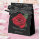 Röd ros på ett Tält med Ribbon Favor Box för den speciella årsdagen. Dimensioner: 3 tum x 1,5 tum x 3,25 tum färg vid utskrift på högkvalitativa lagrar-Fraktaser med Fullt, platta, några enkla enheter krävs