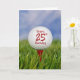 Stäng upp en vit golf boll på en röd tuta i gräs med himlar-bakgrund i 25 år.