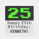 Den här pappra napkin-designen med hög grönt och mager födelsedagspressning har stil nummer 25 på en svart färgads bakgrund för videospel med stor vintage. Det innehåller också hälsning:s födelsedagsmeddelande "Lycklig 25:e födelsedagen" och ett namn som kan redigeras. Fånig och nonsens pappra blöjor av detta slag kan användas vid en party som hålls i firande på 25-årsdagen av en vetenskapsman, en ingenjör, eller någon som uppskattar vintagens videospel. [~Z0000404]