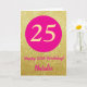 25:e Grattis på födelsedagen Shock rosa och Guld G Kort