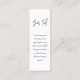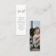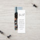Den här lilla bokmärket är litet i storlek men stort i modern enkelhet. Komplettera enkelt stilrena bröllopsinbjudningar och ge viktig information till gästerna med unika anpassade foton på 1"x3" inklusionskort. All text i den här mallen är enkel att anpassa eller ta bort vid behov. Kortet kan innehålla valfria detaljer om er fest, såsom vägbeskrivning, webbplats, speciella önskemål, boende, mottagning eller rsvp. Den eleganta minimalistiska svart-vita designen har en avslappnad handskriven typsnittsstil och en bild som du väljer.