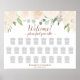 Detta vackra vattenfärgsdiagram i blommigt bröllop har plats för 250 gäster på 25 bord med 10 platser per bord. Den roustiska boho-chicen har handmålad ro, blommor och blommar i neutralt pastellskugga av eller blek persika, tillsammans med eucalyptus lövs- och trädgårdsgrey. Rubriken för elegantens skriptanrop lyder: Välkommen! Hitta bord, med parets datum namn och bröllop vid grund. Underbart sätt att välkomna gäster till din mottagning samtidigt som de skapar det lätt för dem att hitta sina platser.