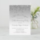 This trendy 25th wedding anniversary surprise party invitation features a sparkly silver faux glitter drip border and silver ombre background. The words "Shhh! It's a Surprise," "25th Anniversary Party" and the names of the couple appear in casual silver gray handwriting script, with the rest of the customizable text in sans serif font. The same silver glitter drip design appears on the reverse side.