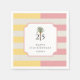 Celebrate a 25th birthday, one of life’s big moments with tropical elegance — think sunshine, palm trees, and a touch of modern preppy charm. This customizable birthday party napkin coordinates with a matching invitation and other party supplies. Featuring soft pastel stripes in blush pink, butter yellow, and cream with a minimalist palm tree accent, this design blends casual luxury with sunny tropical charm. The clean typography and modern layout make it perfect for milestone birthdays, destination parties, or elegant resort celebrations. Personalize the template with your info. Napkins are available in 3 sizes: shown here in the cocktail size; also available in luncheon and dinner sizes.
