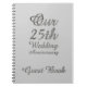 25th Grå färg för silver för bröllopsdaggästbok Anteckningsbok
