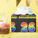Detta glada, roliga och färgglada födelsedagstema försedda presentpapper har ett stort nummer "26" och budskapet "HAPPY BIRTHDAY," båda färgade med ett regnbågsspektrum-gradering inspirerat mönster, tillsammans med en fet gul anpassningsbar mottagarnamn. Bakgrunden är svart. Roligt födelsedagstema försedda presentpapper som detta kan användas för att förpacka en gåva eller present som ges till någon som firar sin 26-årsdag.