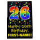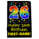Den här roligten, färglös och vibrerande presentsäcksdesignen på födelsedagen har ett stort nummer "26" med en regnbågsspektrumgradient stil mönster, tillsammans med meddelandet "Lycklig 26:e födelsedagen", och en anpassade mottagare namn. Den har också en färgstark bakgrund i mönster med stjärnformer av olika storlek. En presentväska som denna kan användas när en gåva eller present ge till heder för någons 26-årsdag. [~Z0000510]