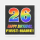 Den här färgstarka, roliga och roligtens pappra napkindesign har ett stort nummer "26" och meddelandet "GRATTIS PÅ FÖDELSEDAGEN,", båda färgader med en regnbågsspektrumövertoning som inspirerade mönster, tillsammans med en djärv gult redigerbar mottagare av namn. Bakgrunden är svart på färgad. Roligt, sådana redigerbara pappra blöjor kan användas vid en party som hålls för att fira någons tjugosjätte födelsedag. [~Z0000476]