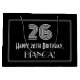 På 1920-talet/1930-talet inspirerade stil vintagen till att se den födelsematade presentsäcksdesignen med ett stort konsthugga som ser inspirerad ut till nummer "26", budskapet "Lycklig 26:e födelsedag", ett anpassade namn, och ett gräns mönster som består av tunt linjer. Den har också en bakgrund med svart färgad. En presentpåse som denna skulle kunna användas när man fyller i en födelsedagspresent eller gåva till någon som firar sin tjugosjätte födelsedag. [~Z0000497]