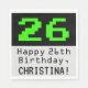 Den här nonsens- och roligtens födelsedag med den pappra napkin-designen har ett stort stil-nummer "26" för datorspel i grönt på en svart färgad. Det innehåller också hälsning:s födelsedagsmeddelande "Lycklig 26:e födelsedag" och ett namn som kan anpassas. Roligt pappra servetter som denna kan användas vid en party som hålls i firande på 26-årsdagen av en ingenjör, en datorhistoriker eller någon som uppskattar vintagens videospel. [~Z0000404]