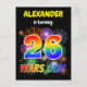 Framsidan av detta sjudande och spännande vykort från födelsedagsfest inbjudan har en personlig namn, en roligt som sprider berömda fyrverkerier inspirerade mönster, och meddelandet "26 ÅRS OLD!" med ett färgstarkt regnbågsspektrum inspirerat övertoningen mönster. Baksidan innehåller ett personlig med information om party, till exempel när och var det hålls kvar. Sådana vykort kan skickas till potentiella gäster från en födelsedagsfest som hålls i firande på någons tjugosjätte födelsedag. [~Z0000452]
