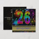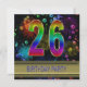 En roligt 26:e födelsedagsfest inbjudan med lycklig färg, bubblor och fyrverkerier. Ett underbart kort för alla åldrar. Se hela raden av inbjudningar och kort i min butik.